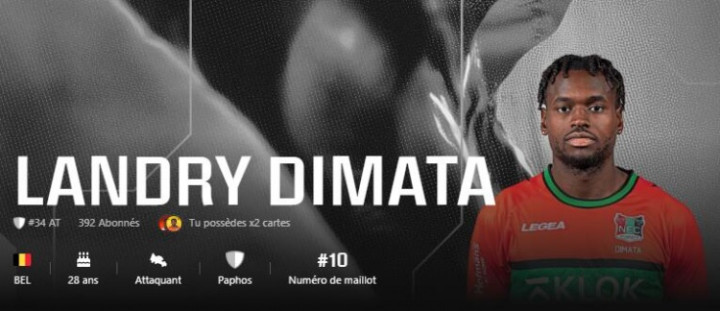 迪马塔现年28岁,比利时前锋,曾效力于安德莱赫特、沃尔夫斯堡、西班牙人等队,去年夏天从萨姆松体育加盟塞浦路斯帕福斯。本赛季,迪马塔为帕福斯出战22次,贡献1球2助攻,其中欧冠出战6次,值得一提的是,他以39.6公里/小时成为本赛季欧冠最快球员。